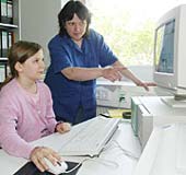Mit Schülerinnen im Gespräch: Dr. Karla Sichelschmidt (42), Juristin und Leiterin der Rechtsabteilung