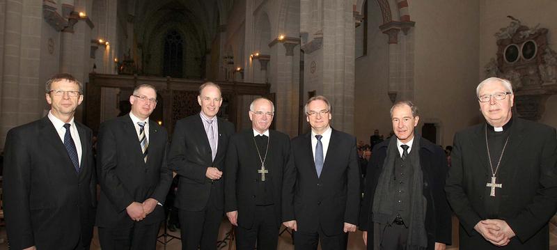 Von links nach rechts: Oberbürgermeister Klaus Dieter Mohrs (Wolfsburg), Rabbiner Jonah Sievers (Braunschweig), Landesbischof Ralf Meister (Hannover), Landesbischof Prof. Dr. Friedrich Weber (Braunschweig), Ministerpräsident Dr. Reiner Haseloff (Magdeburg), Oberbürgermeister Dr. Gert Hoffmann (Braunschweig), Bischof Norbert Trelle (Hildesheim).