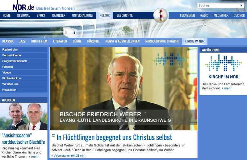 Braunschweig/Hamburg. Im neuen Videoblog für die Evangelische Kirche im NDR ruft Landesbischof Friedrich Weber zur Solidarität mit den afrikanischen Flüchtlingen - besonders im Advent - auf. Für die Menschen, die in Hunger und Armut leiden, sei Europa ein Inbegriff von Glück. "Doch ihr Advent ist eine Ankunft mit Schrecken", bekräftigt der Bischof. Das Video ist ab 28. November hier online.
