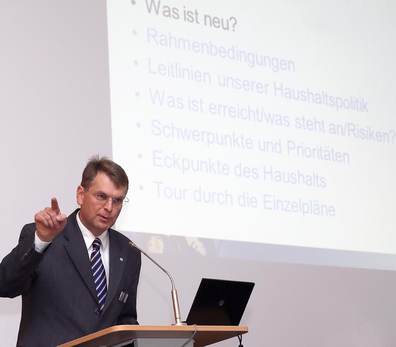 Vor allem die Entwicklung der Personalkosten sei problematisch: „Wir gehen davon aus, dass die Personalkosten durchschnittlich um 1,5 Prozent pro Jahr zunehmen und diese Zunahme angesichts von derzeit noch wenigen Abgängen nicht vollständig kompensiert werden kann." Nach Mayers Darstellung wachsen sie in 2013 und 2014 um über 1,6 Millionen Euro an. Das sei ziemlich genau die Größenordnung, die an anderen Stellen gekürzt werden mussten.